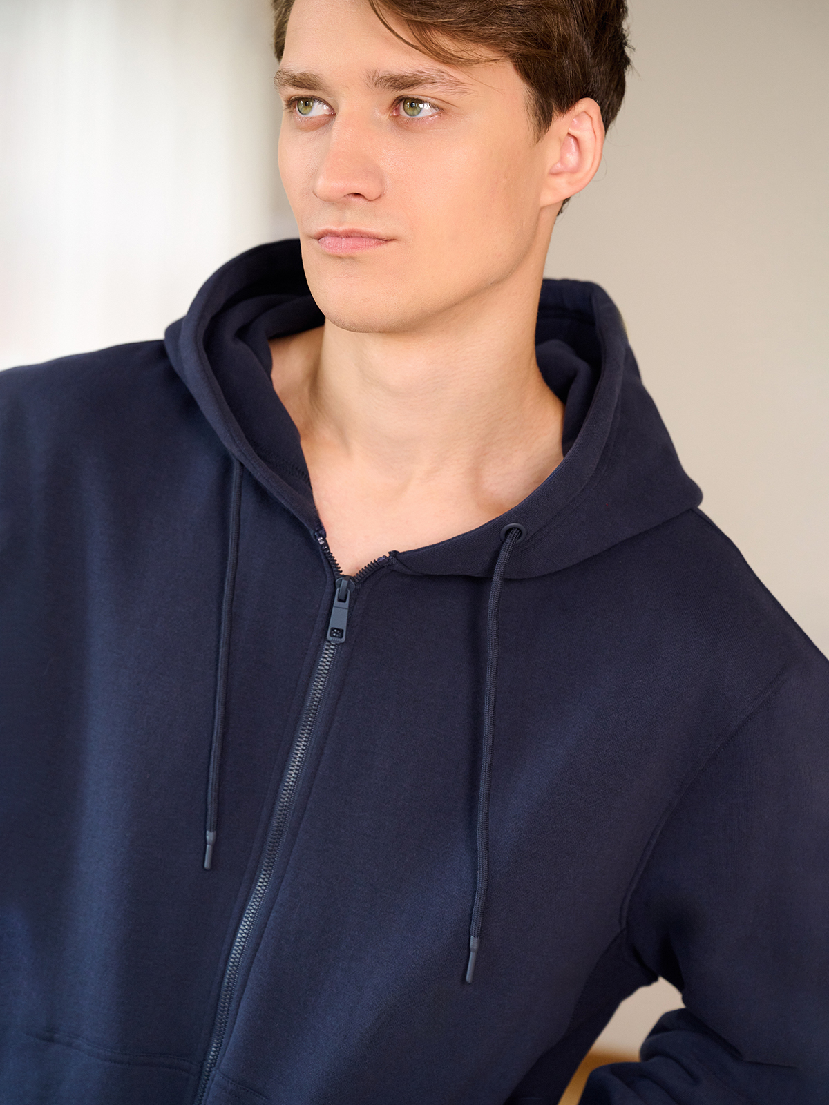 — Толстовка с полной застежкой-молнией позволяет легко регулировать уровень комфорта — от расслабленного утра до активного вечера.