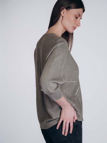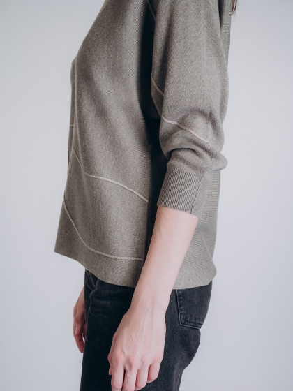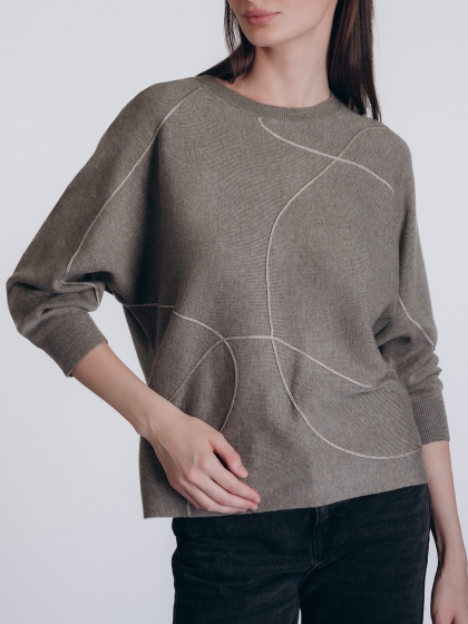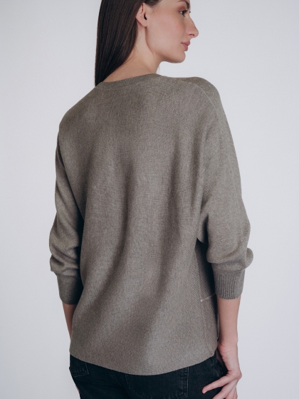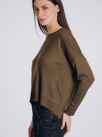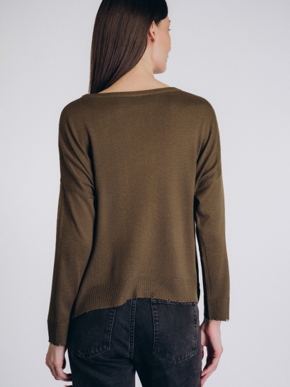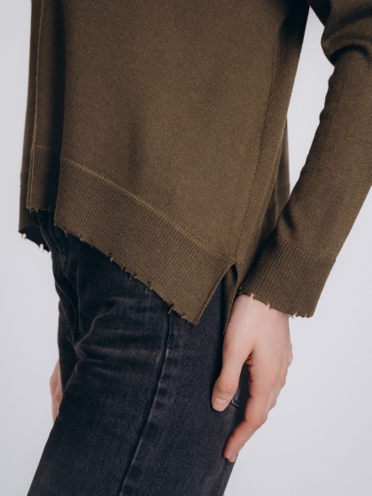 Женская кофта бренда Indefini выполнена в приглушённом оливковом цвете из мягкой смесовой ткани с вы.....