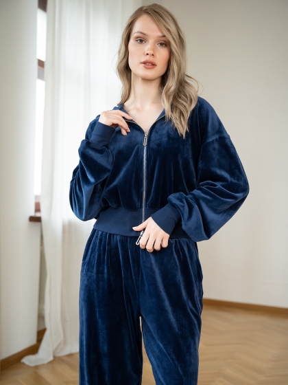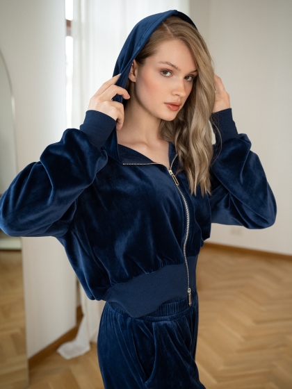 Женский велюровый костюм Indefini выполнен в насыщенном темно-синем цвете. Комплект состоит из укоро.....