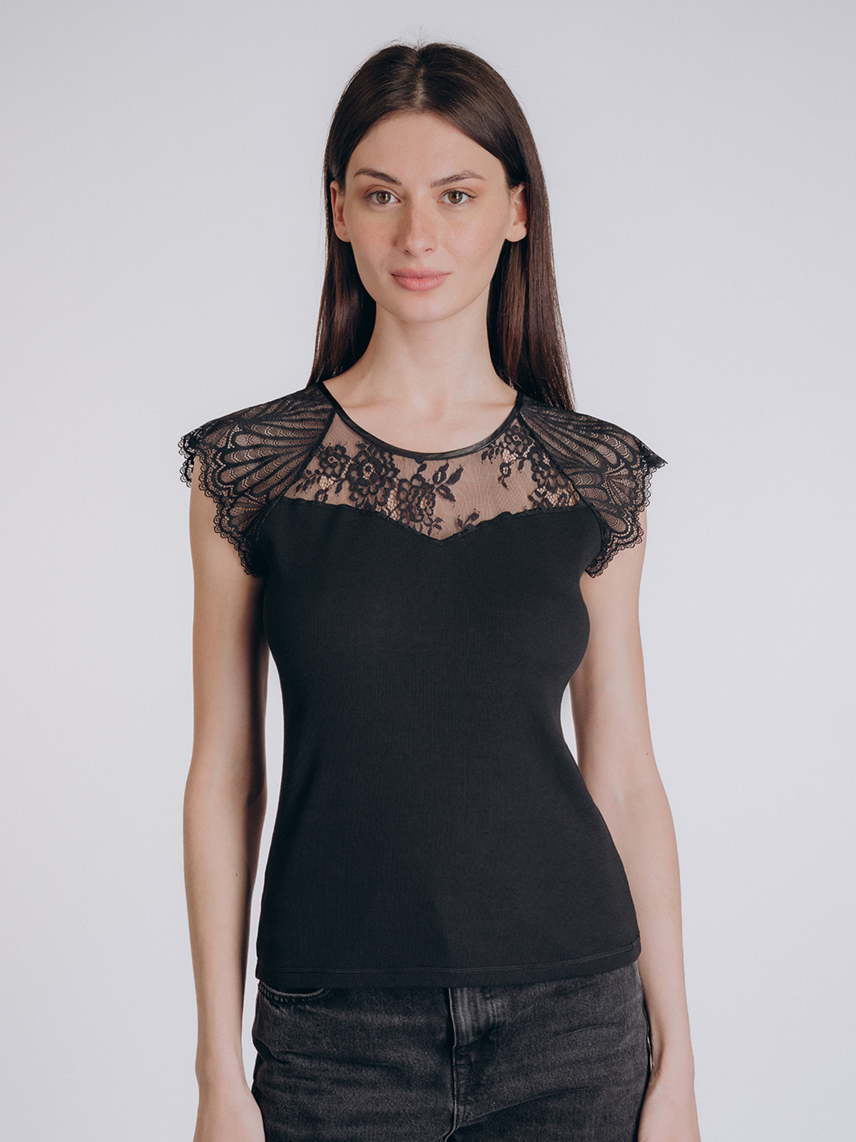 Женская чёрная майка с кружевом (арт. 5035TDJ)