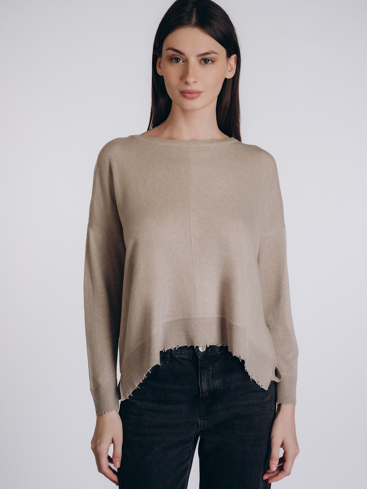 Тонкий пепельный оттенок придаёт образу утончённость и современную лаконичность, делая эту кофту универсальным элементом повседневного гардероба.