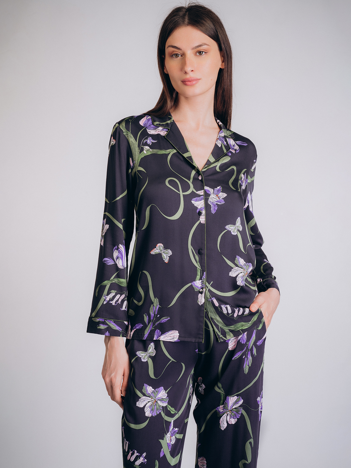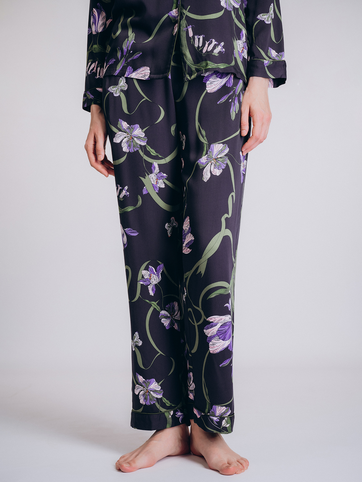 Пижама выполнена из мягкой и приятной на ощупь вискозы, что делает её идеальной для комфортного сна и отдыха.