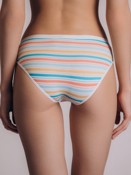 Яркие трусы-слипы от бренда Indefini с разноцветным полосатым принтом. Модель выполнена из мягкого х.....